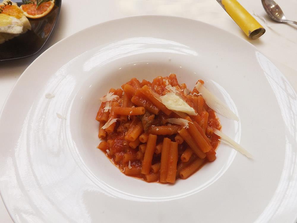 Sedanini di lenticchie rosse in salsa abruzzese e Provolone Valpadana D.O.P. piccante