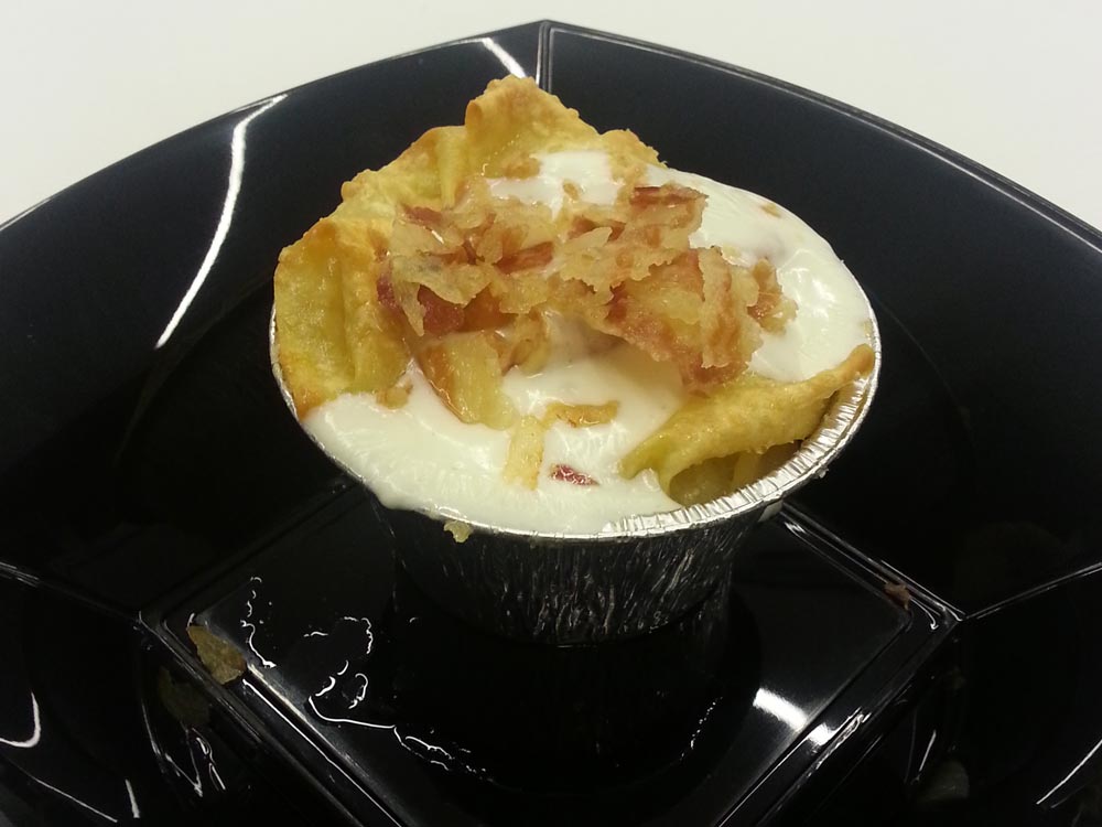 Fagottino di pasta con porri e patate su fonduta al Taleggio D.O.P.