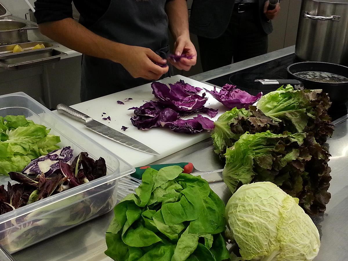Scottare l'insalata con un filo d'olio evo, girarla una sola volta ed asciugare eventuale l’olio in eccesso su della carta assorbente.