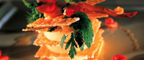 Millefoglie di Provolone Valpadana D.O.P. dolce con mousse di melanzane