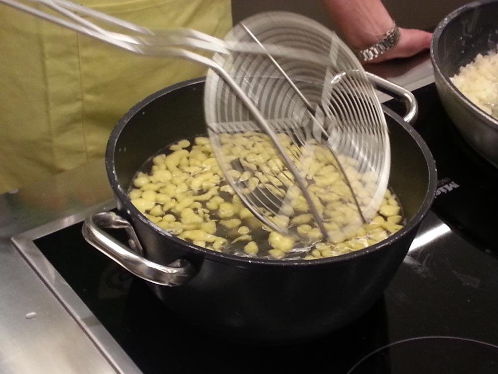 Molto partecipata è stata anche la preparazione di un tipico della cucina dell’Alto Adige: gli spatzle, che tanto piacciono per il loro gusto avvolgente arricchito dal sapore intenso dello speck e del Taleggio.