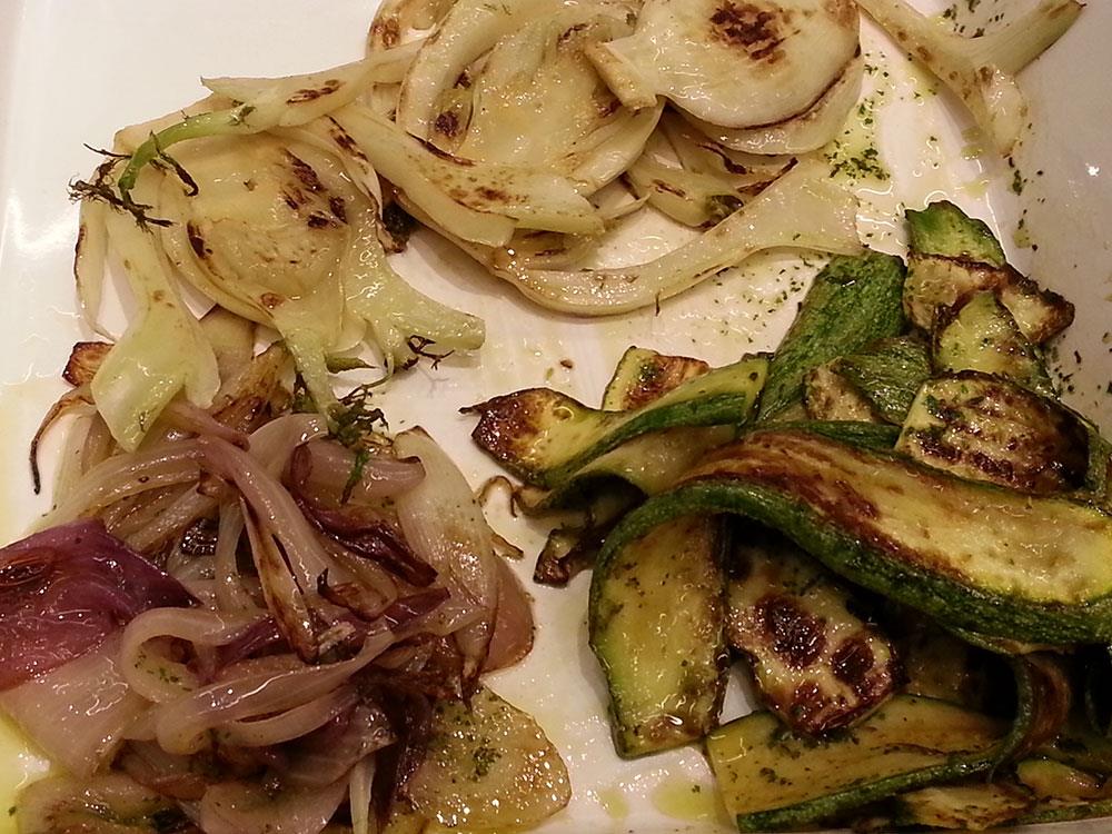 Cuocere le verdure finché non compaiono le bruciature superficiali e finché non saranno tenere. Disporle su un piatto ed insaporirle col condimento.