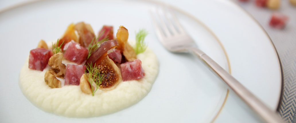Zuppetta di cavolfiore con frutta secca e Salame Cremona I.G.P.